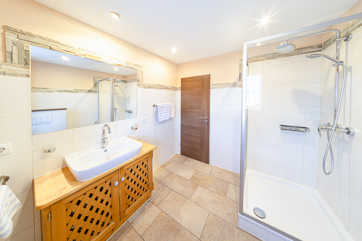 mit Regen-Dusche und Fußbodenheizung, Flachbildschirm