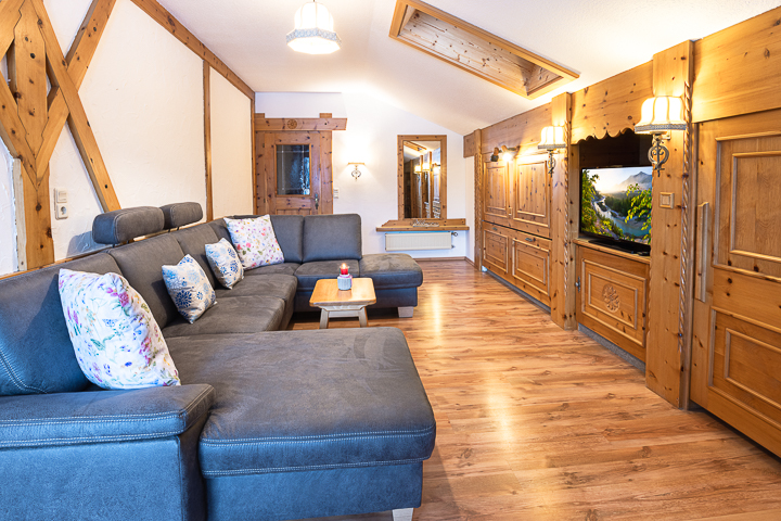 Es hat eine große gemütliche Eckbank, 2 Fernsehsessel.